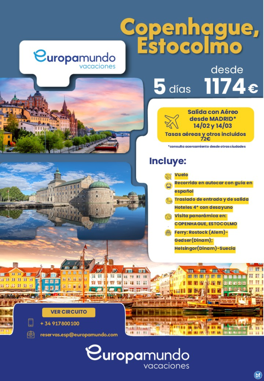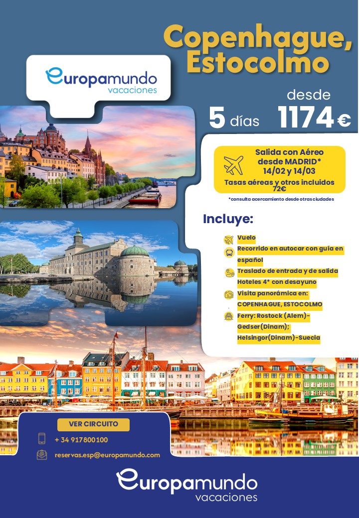 Copenhague, Estocolmo. Salida con Aéreos desde Madrid